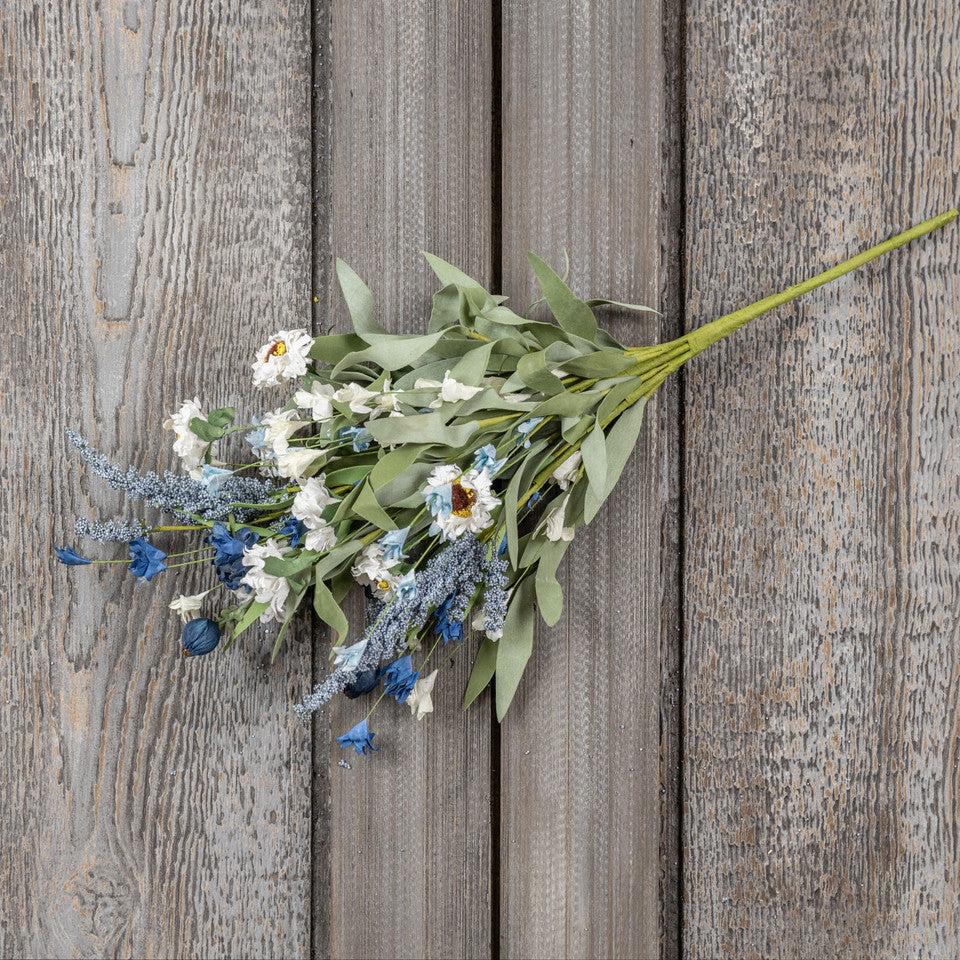 22" White Daisy & Blue Heather Bush