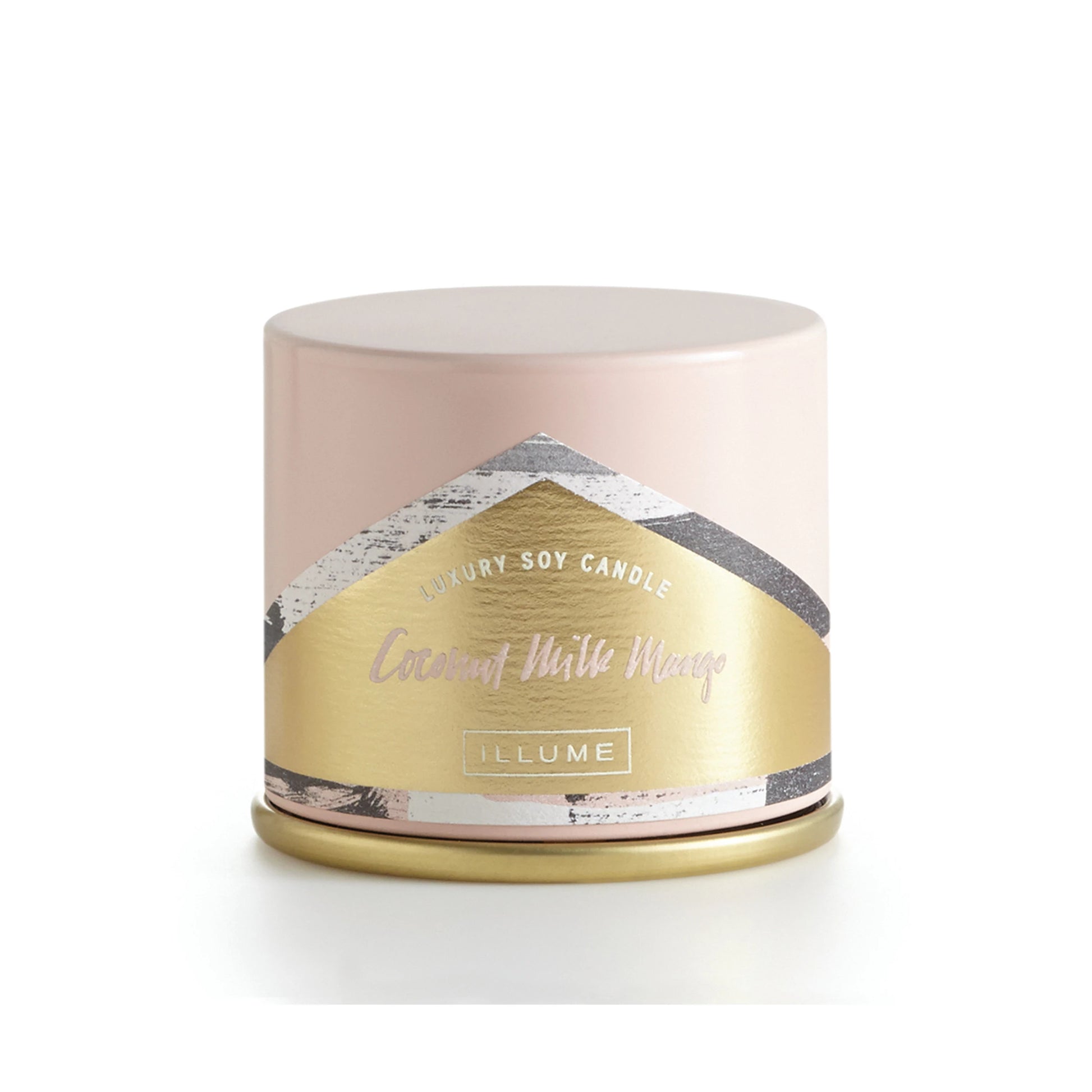 Lift the cover on one of these vanity tins to reveal an artistic pattern. Easily extinguish the candle by fully reattaching the lid. Great for gifts!