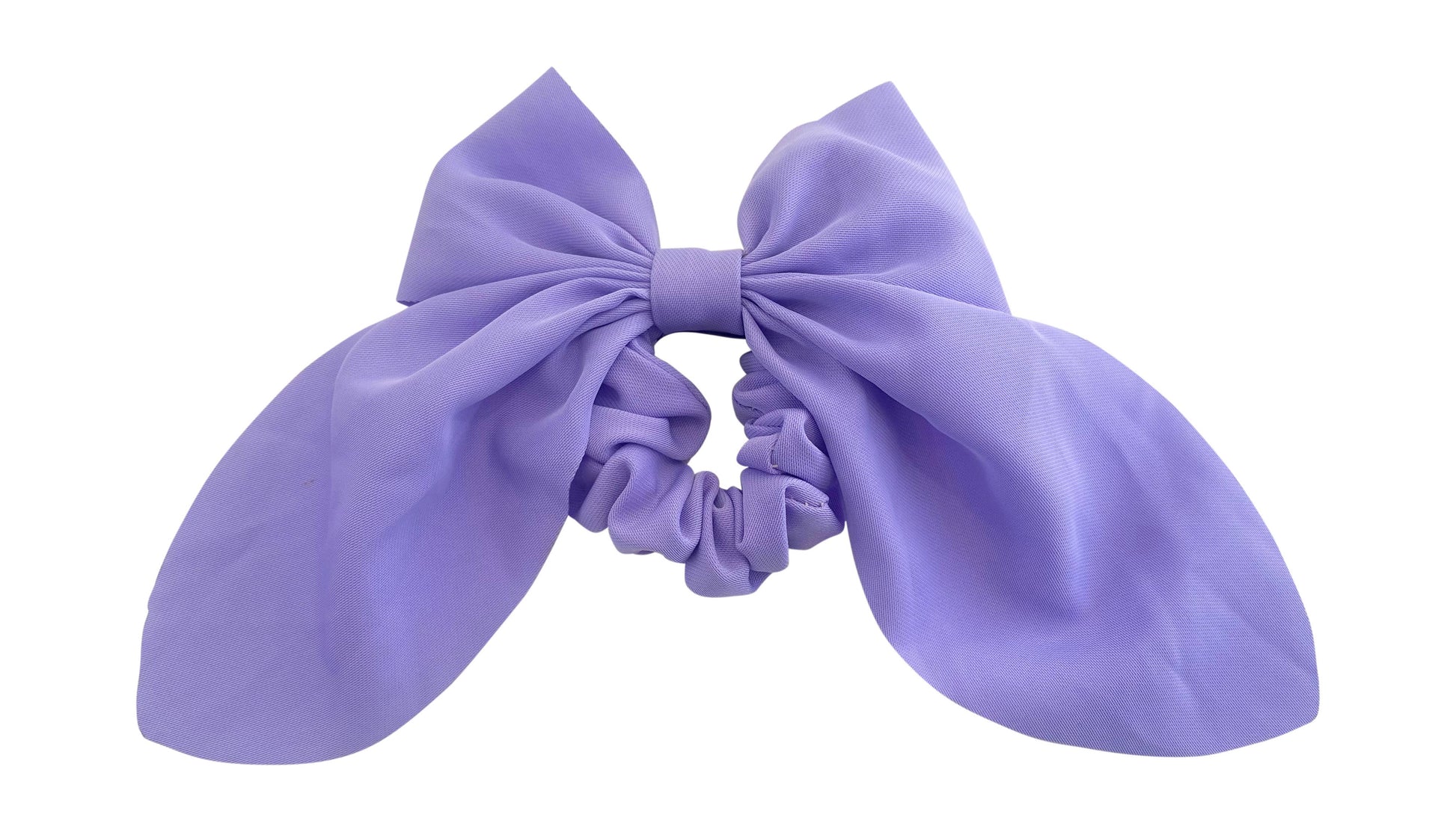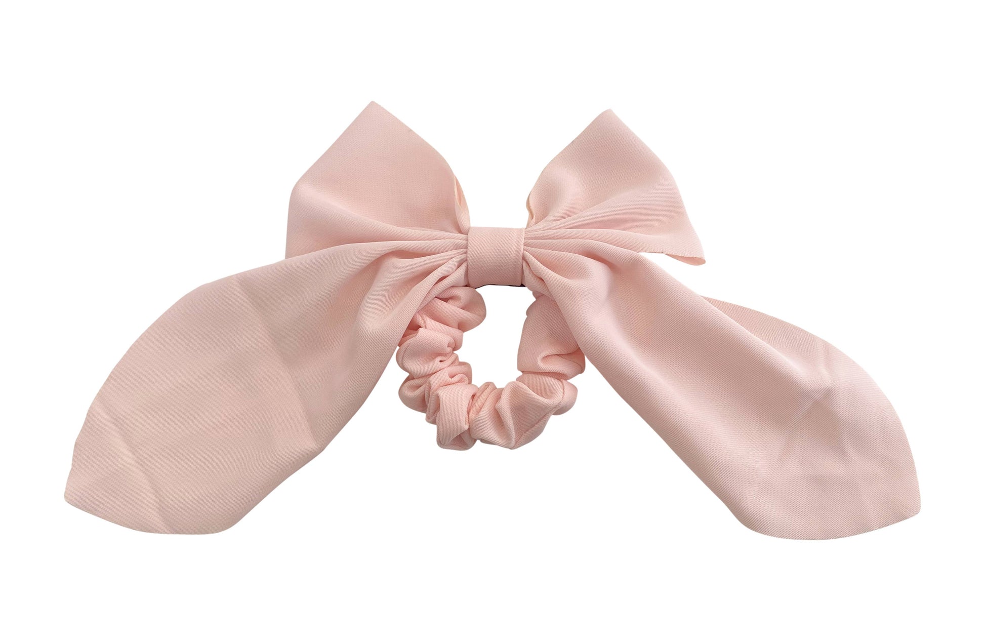Adjustable fabric scrunchie with bow detail. Available in several colors.
