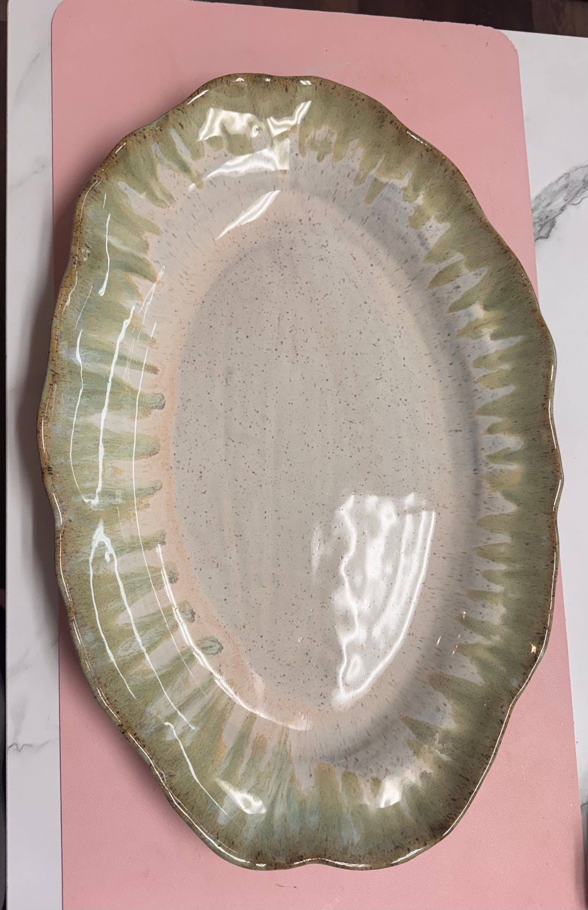 The Grande Oval Server is an extra-large oval serving dish that truly lives up to its name. Measuring approximately 21 x 13.5", it’s perfect for generous spreads and large gatherings. Shown here in Matcha Latte, it makes a striking statement on any table.