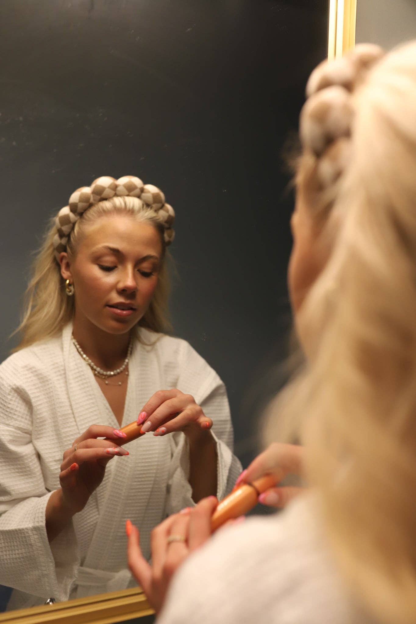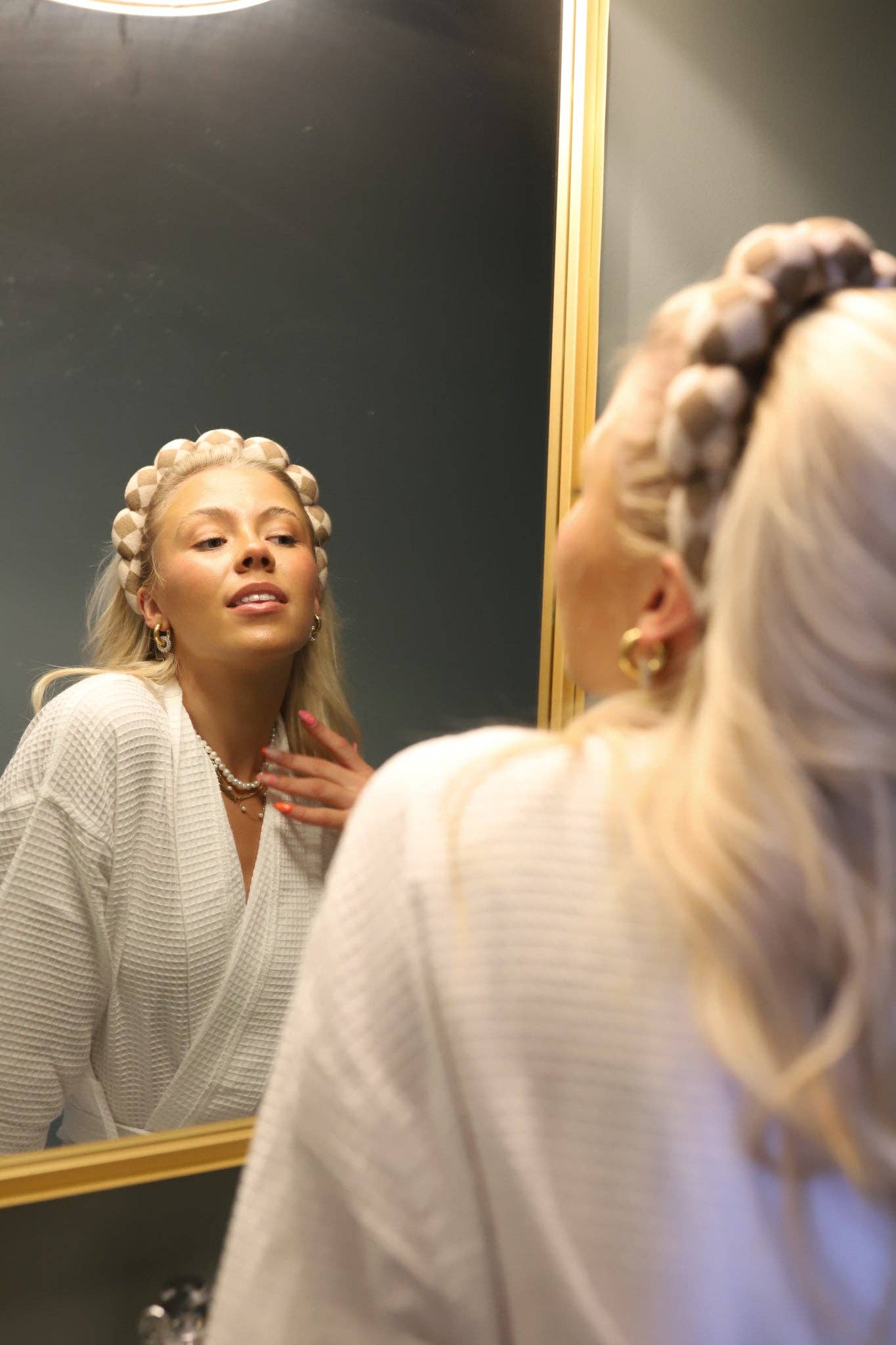 This towel headband is perfectly designed to pull your hair back while putting on makeup, doing skincare and anything else where you want your hair out of your face. The soft plush towel-like microfiber material helps limit creasing in your hair while wearing, meaning it won't ruin your hair while wearing it.