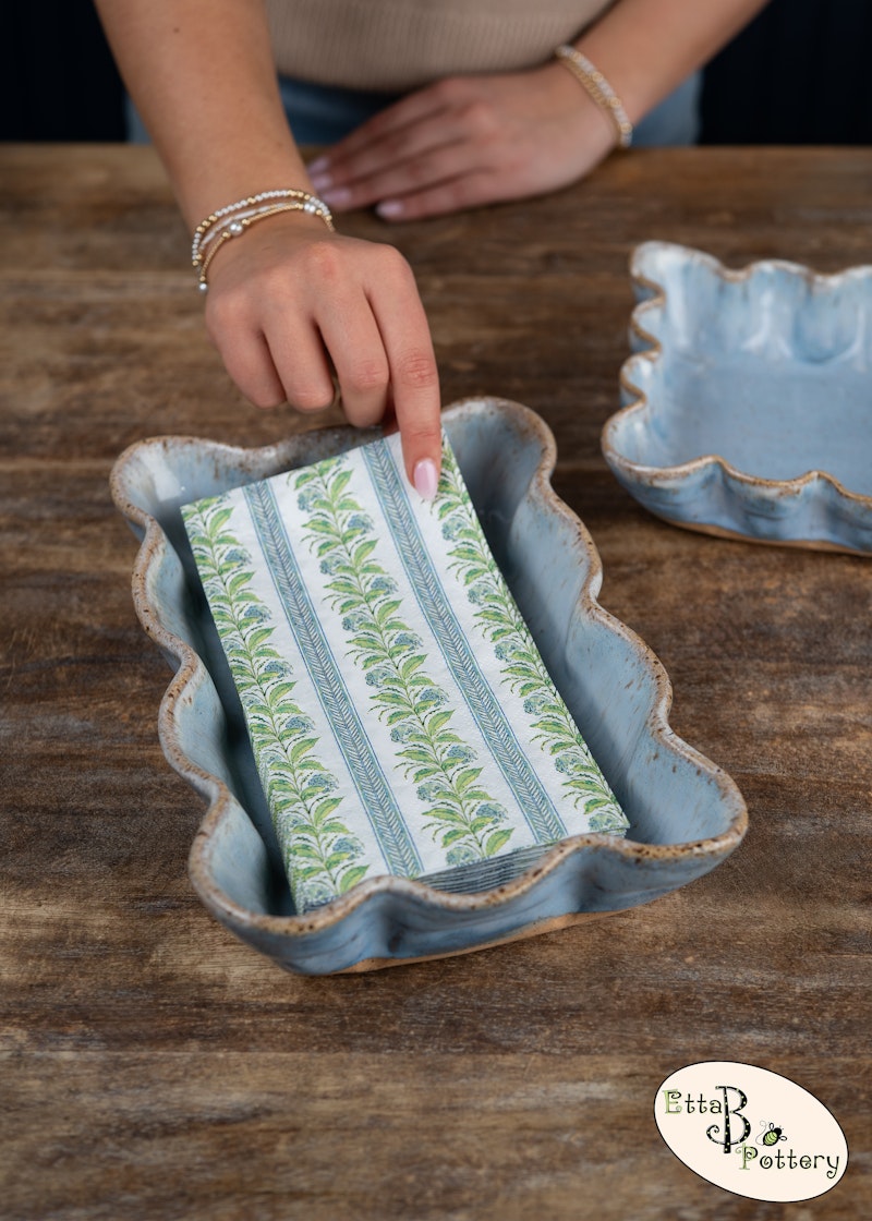 Sleek, stylish, and practical—our Guest Towel Holder keeps rectangular napkins tidy and makes a perfect gift for hosts or home entertainers. Approximately 10" x 7". Shown in Wisteria & Oyster.