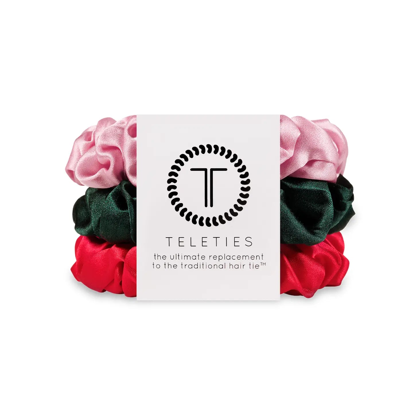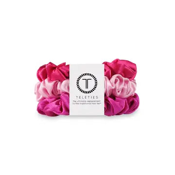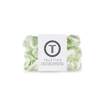 Your TELETIES just got an upgrade! The TELETIES Silk Scrunchies are made of 100% natural silk, making them super soft and gentle for your hair. It also prevents breakage and damage while you snooze. With our innovative TELETIES spiral coil inside, you get the same features of our game-changing hair ties, now covered in silk! Get ready to wake up with hip, happy and healthy hair! The large size is best for thick hair.