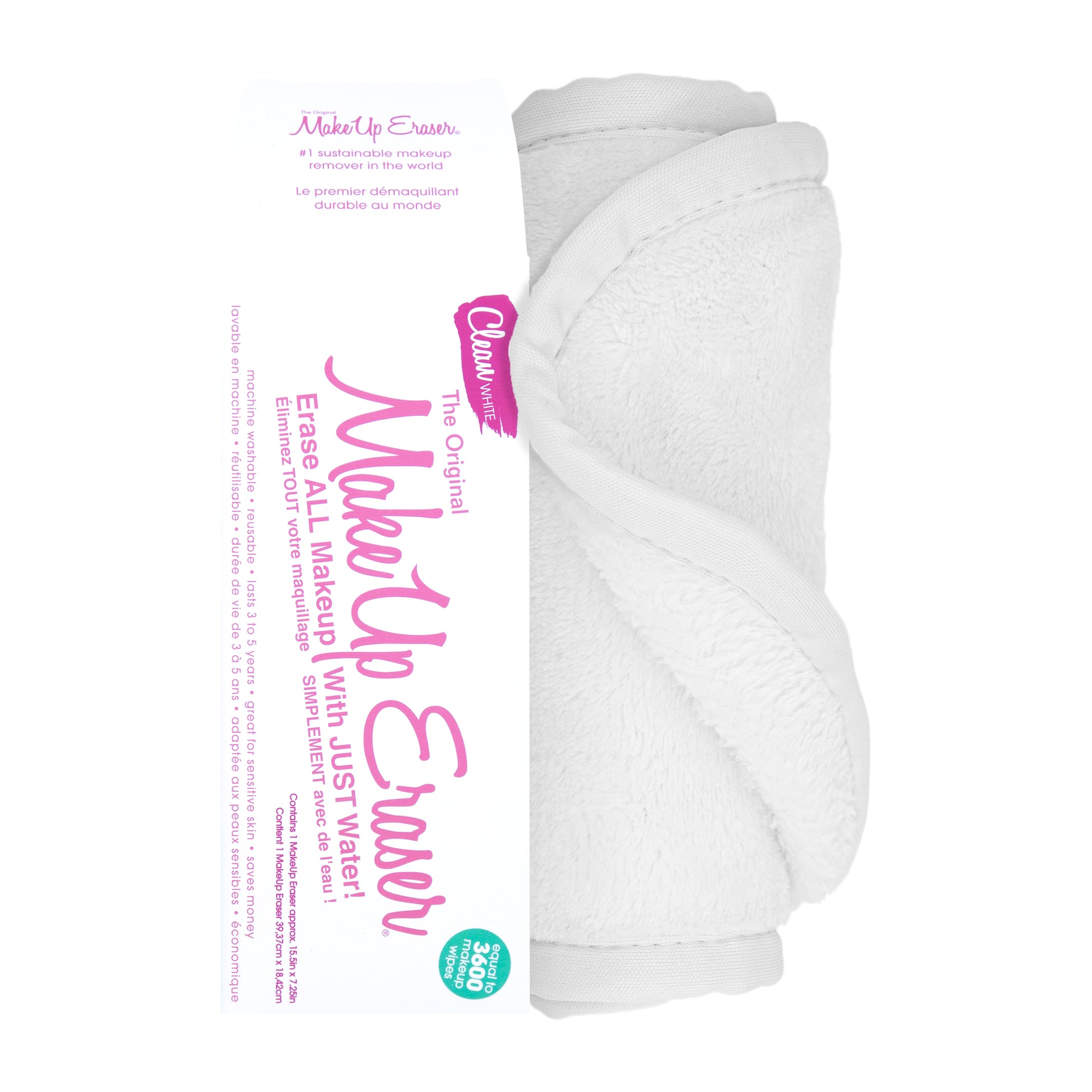 The Original MakeUp Eraser is a premium, patented, polyester cloth made up of millions of tiny hair-like fibers that work together to create a "suction" for all dirt, makeup, & oil in your pores. Double-sided to erase makeup with the short fiber side & exfoliate the skin with the long fiber side (side with tag). Reusable, machine washable, & lasts 3 to 5 years.