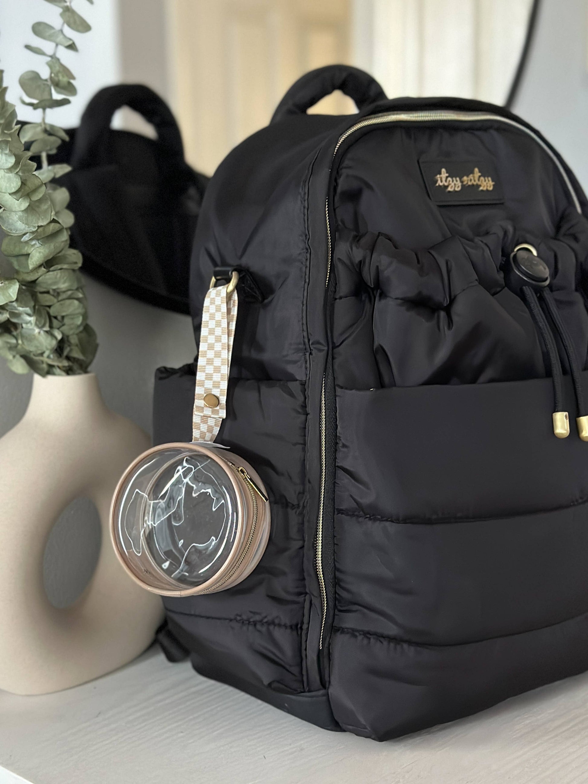 The clear winner in paci storage! The multi-use Itzy Paci Case™ attaches onto your diaper bag, purse, or travel bag to keep essential parenting items in clear view. Just snap the case to your diaper bag and go! Clear material shows off your adorable Itzy Ritzy pacifiers and keeps them clean inside your bag.