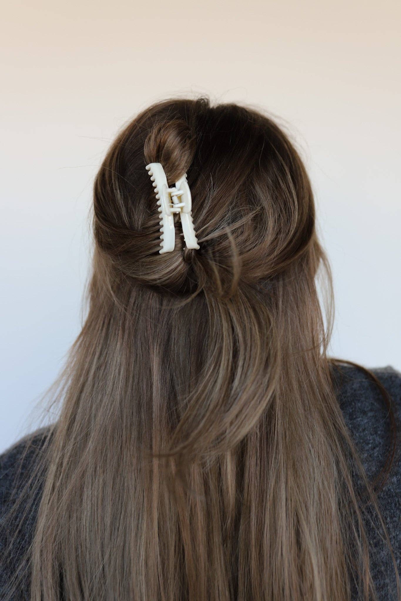 WHICH 'HOLD EVERYTHING' CLAW IS BEST FOR YOUR HAIR TYPE? Original: 5 inches long. Best for LONG and/or THICK hair. Also works best for textured hair. Midi: 3.5 inches long. Best for short-medium hair that is thin to medium thickness. Mini: 2.5 inches long. Best for short and/or thin hair.