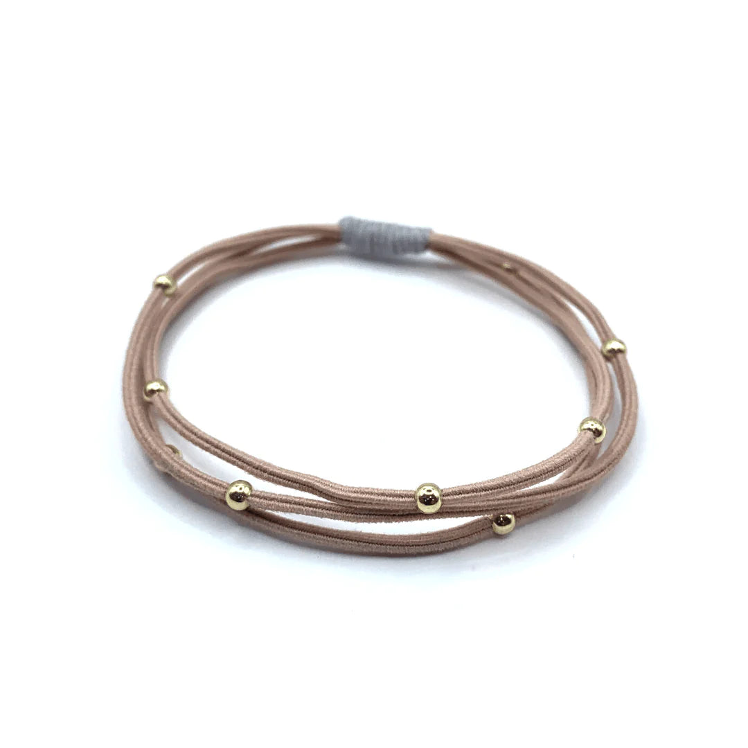 14k Gold-Filled Waterproof Bracelet Hair Bands! Our smart and stretchy water pony (TM) bracelet hair bands are the most-loved hair ties on the market! Each pony is triple layered with nine 14k gold filled beads spaced around so it looks fabulous on your wrist and in your hair! We can't say enough about our heavenly, sleek hair bands. Swim, surf, ski, sweat, shower...the beads will not tarnish!