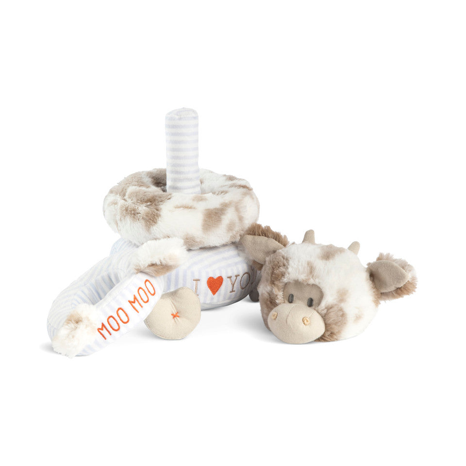 Baby's new, favorite plush toy! This darling Stackable Plush - Cow stuffed animal from the Stackable Buddies collection is a great way to help baby with their fine motor skills. Plus, this sweet cow will look adorable on a nursery shelf when not being played with.