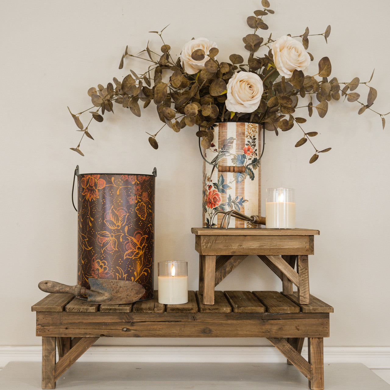 Large: 8"L X 8"W X 12.5"H Brown Floral