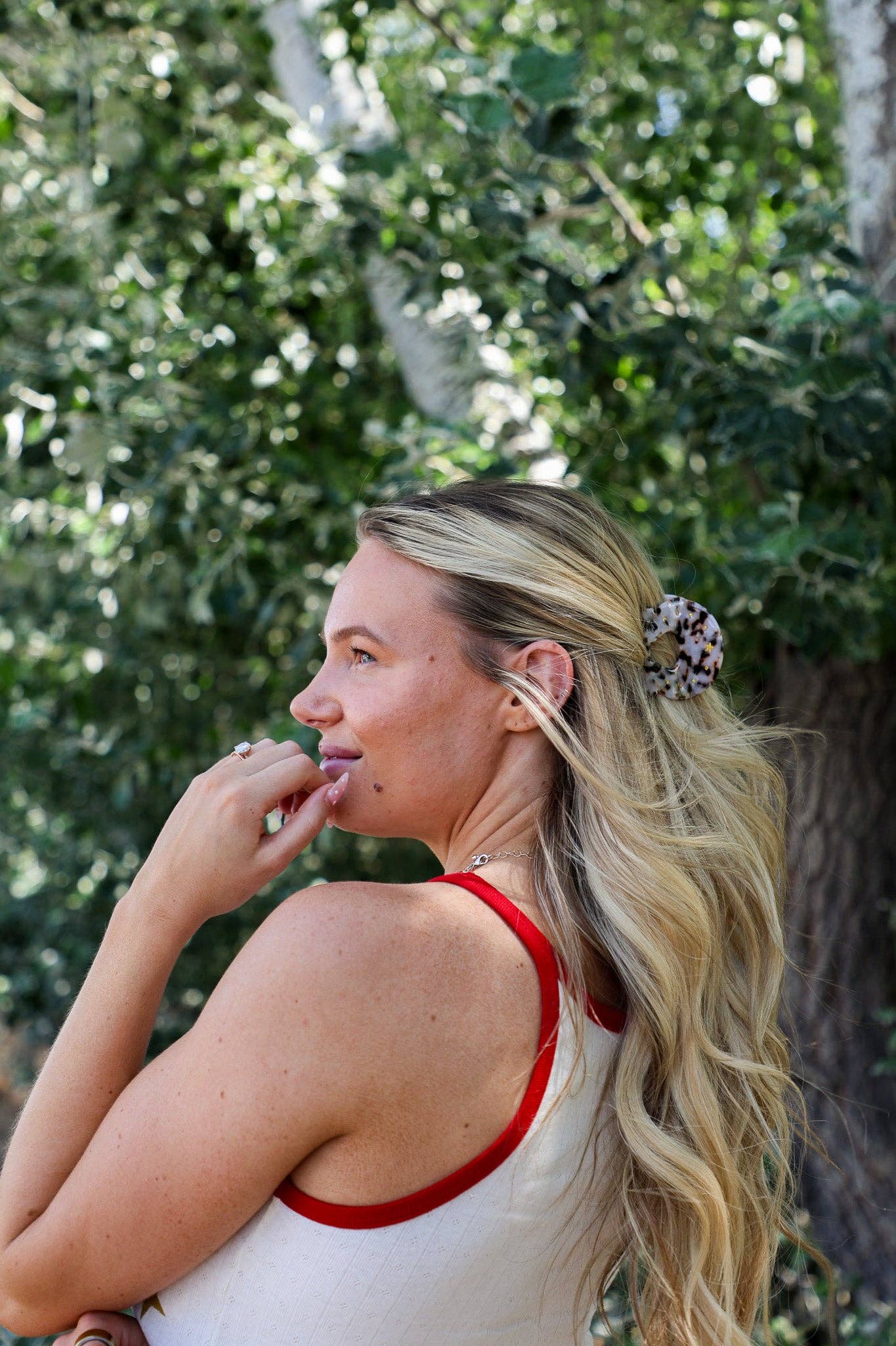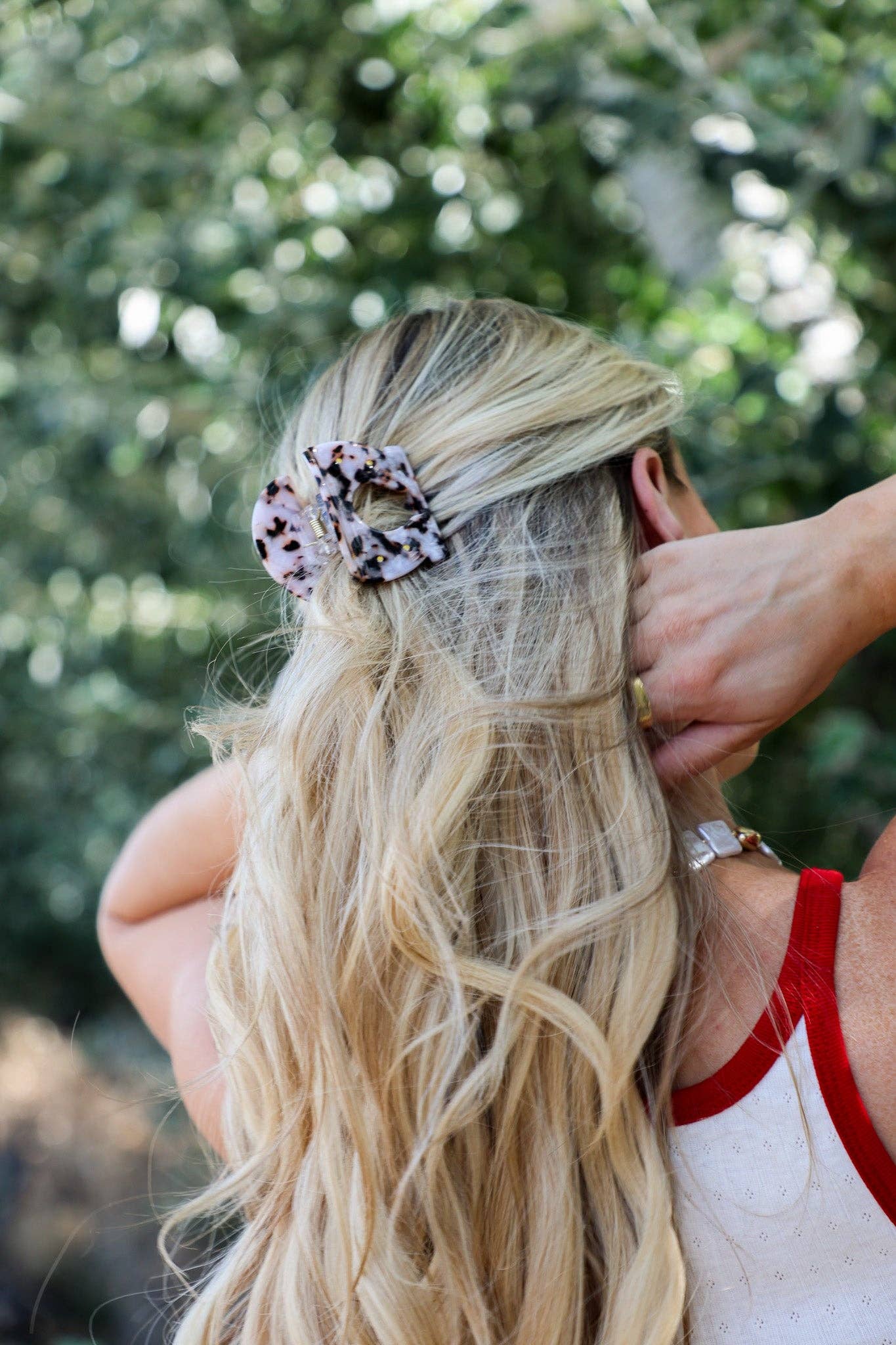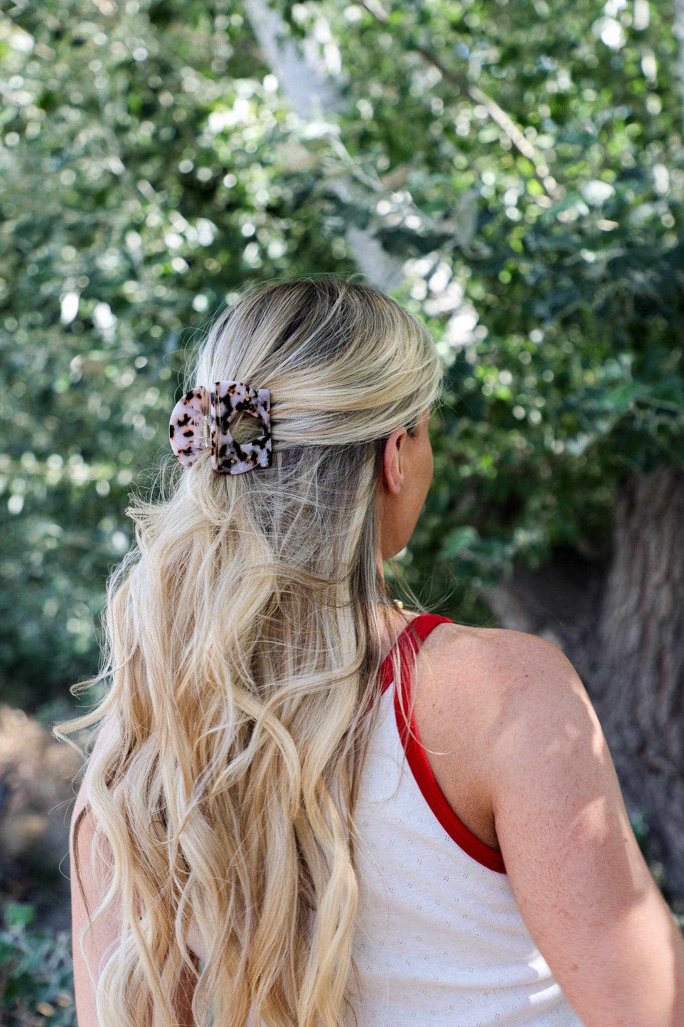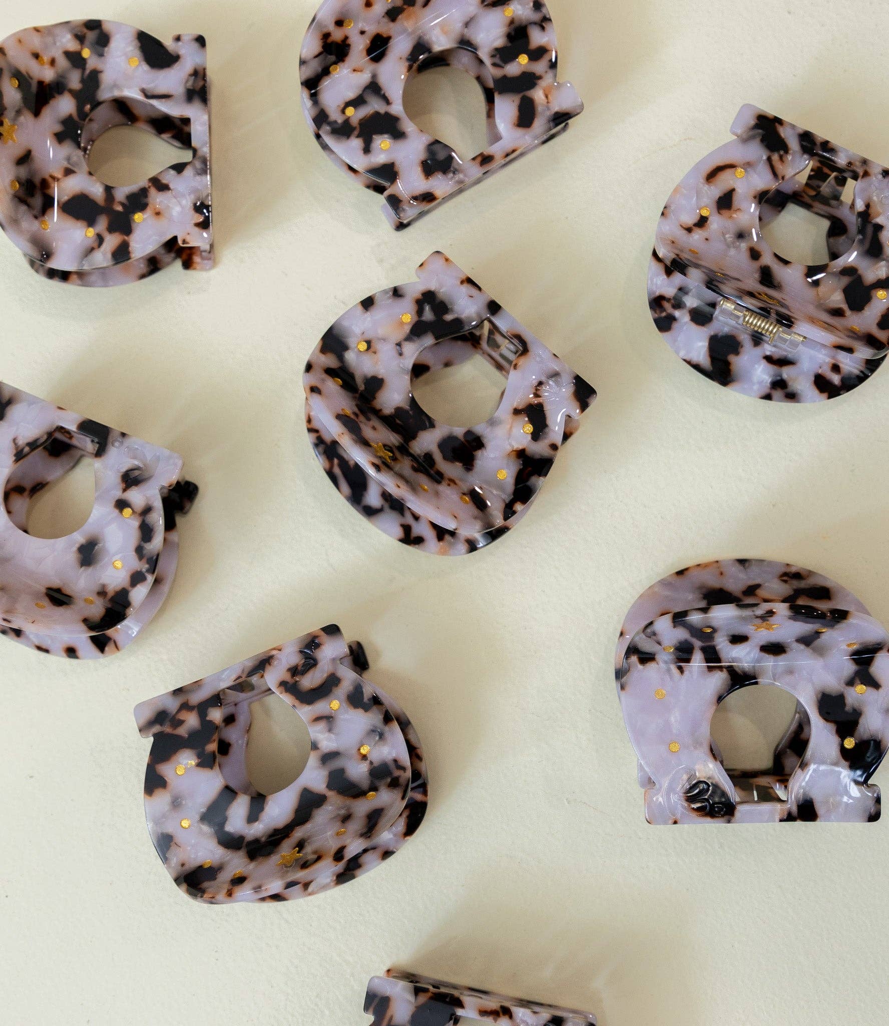 our horseshoe hair claw is here to wrangle all your strands in style. crafted from premium black and white cow print acetate, this little western-inspired clip adds just the right touch of yeehaw to your everyday look.